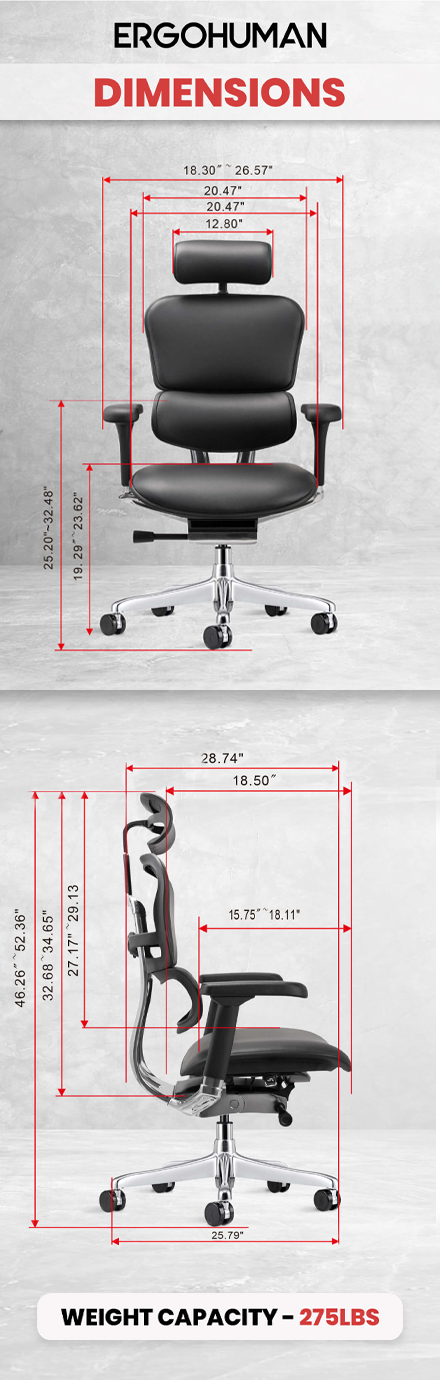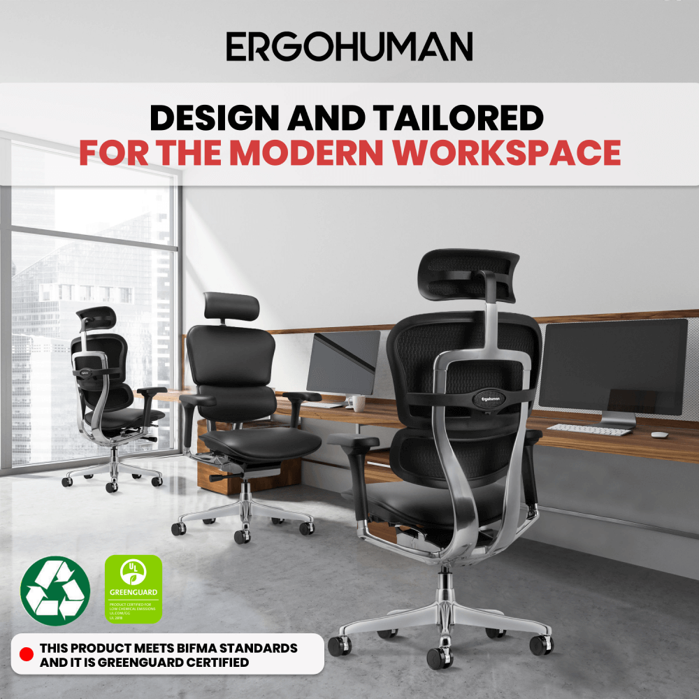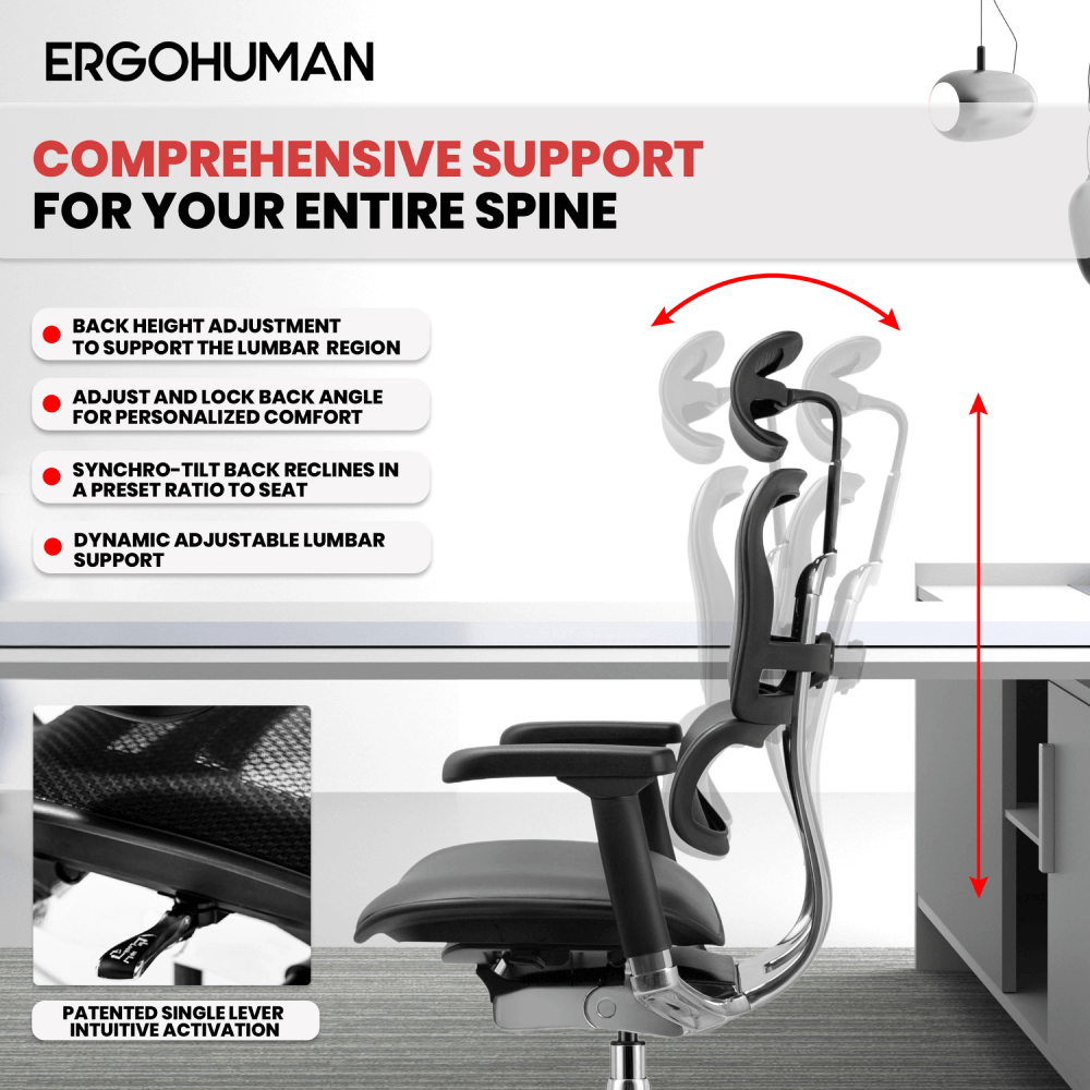 All of our ERGOHUMAN™ chairs were engineered with your total comfort in mind. Aesthetics, form and function are merged seamlessly in a single design, allowing ERGOHUMAN™ chairs to be minutely adjusted to achieve unrivaled support….